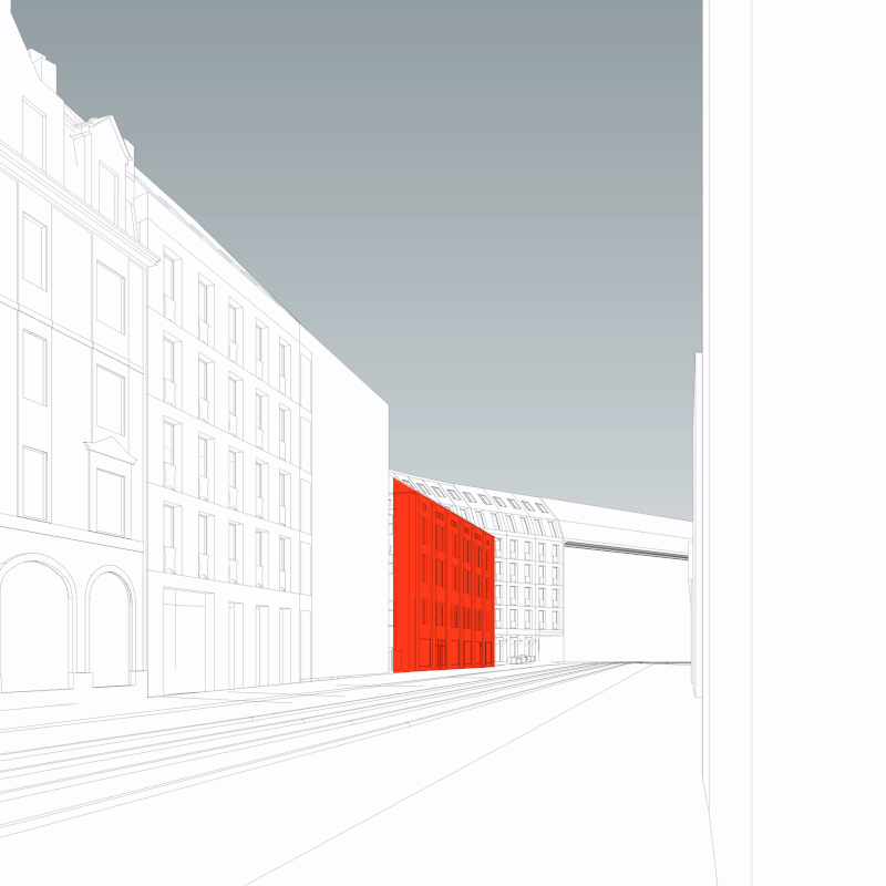 As part of the architectural competition, a proposal is being developed for the construction of two new multi-storey residential buildings together with the landscaping of the adjacent territory, while also considering the broader integration of the quarter within the urban fabric.