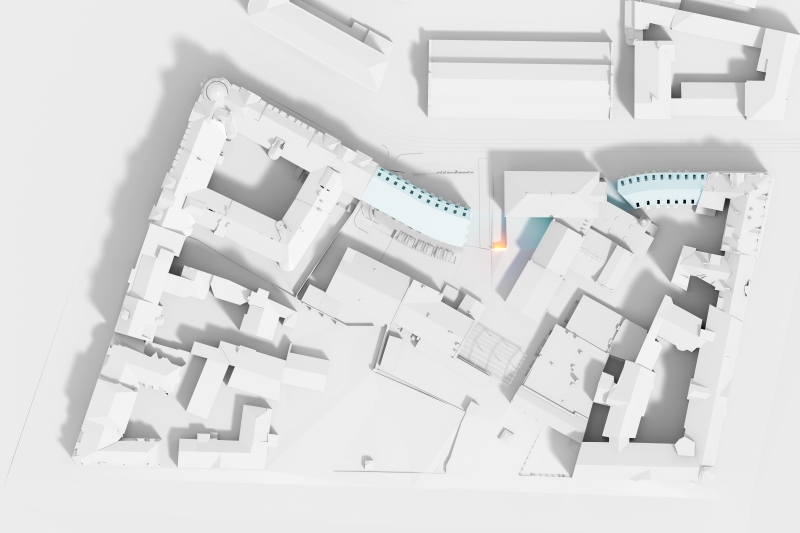 As part of the architectural competition, a proposal is being developed for the construction of two new multi-storey residential buildings together with the landscaping of the adjacent territory, while also considering the broader integration of the quarter within the urban fabric.